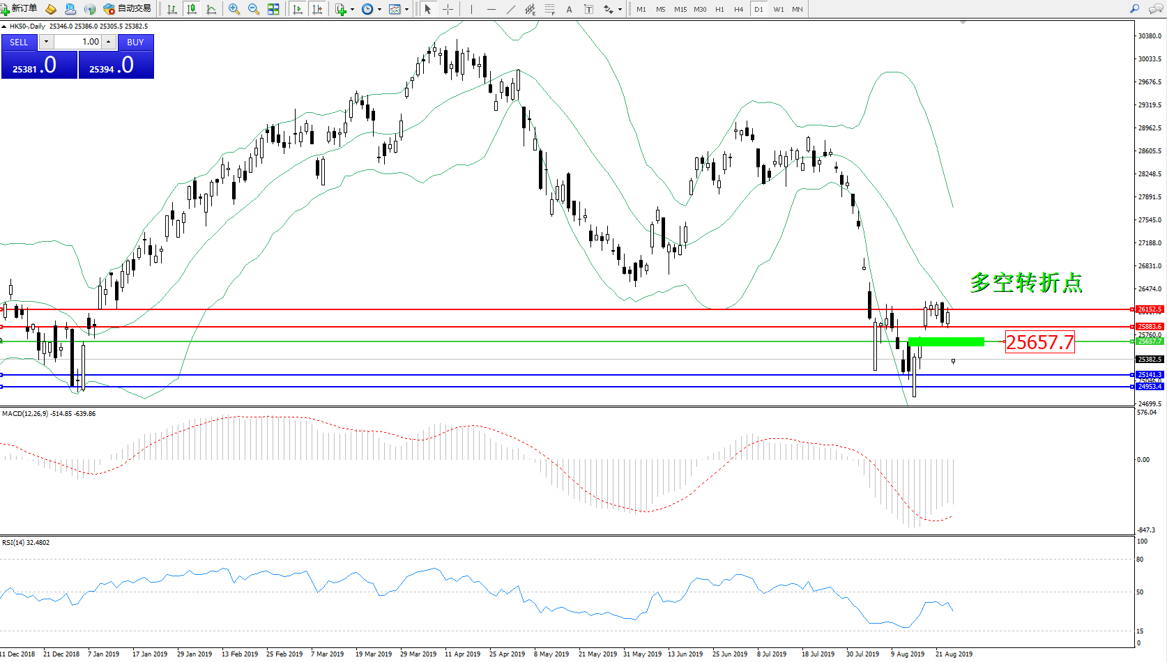 交易策略:25657下方看跌,目标25141、24953