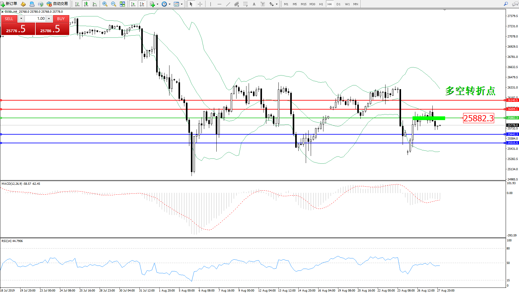 道琼斯指数827日(周二)收盘下跌120.90点,跌幅0.47%,报25777.90点。美国经济数据令人失望和贸易争端持续,美国10年期国债收益率跌破1.5%2年期与10年期美债收益率倒挂幅度加深,发出经济衰退的强烈警示讯号。投资者仍在权衡国际贸易局势发展及衰退风险。