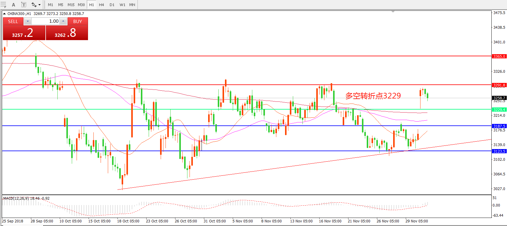 多空转折点:3229.00