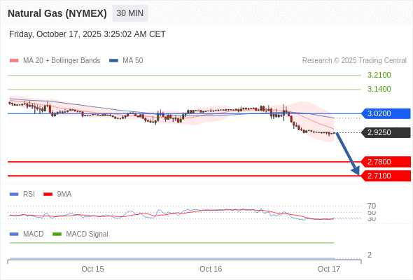 Natural Gas (NYMEX) (NOV5) 当日内: 看跌,当 3.0200 为阻力位。